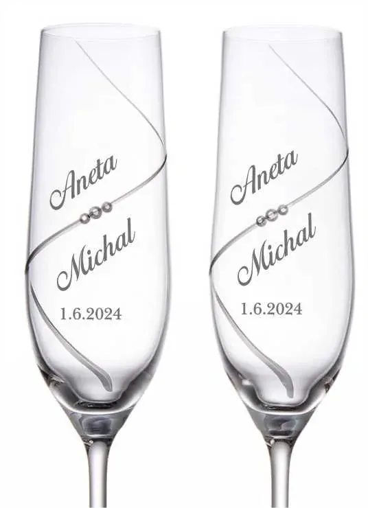 - Svatební skleničky na sekt ručně broušené s kameny Preciosa, 2 ks