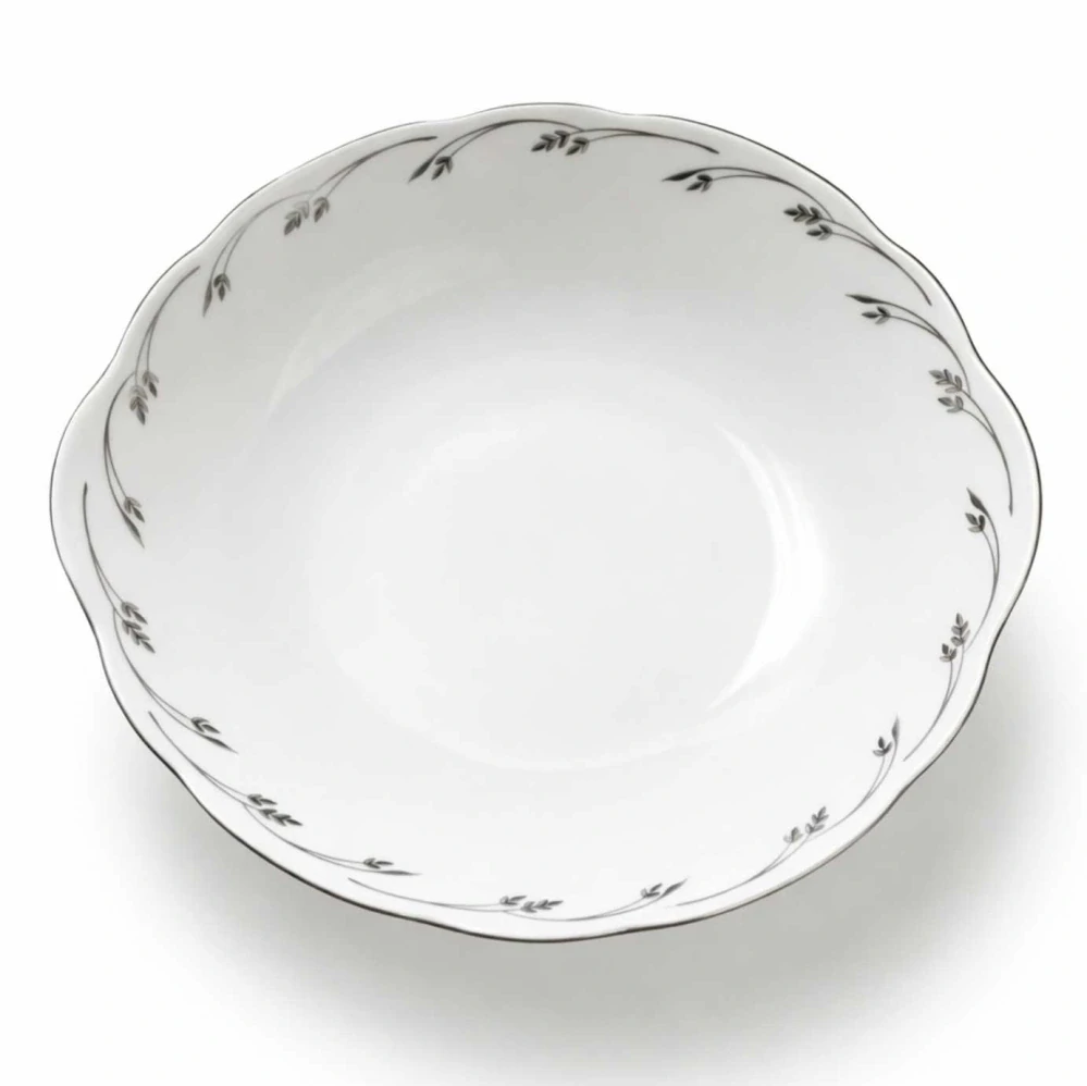 Koláčový talíř 27 cm od výrobce Leander Loučky, zdobený platinovým motivem.
