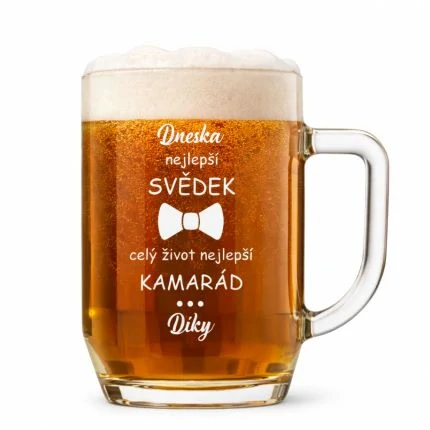Perfektní dárek pro svědka. Půllitr Bohemia s ručně pískovaným motivem. Technika pískování je nesmyvatelná, obdobná jako klasické broušení.