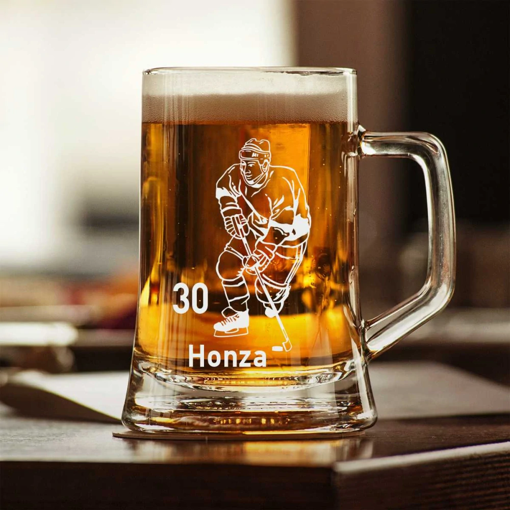 Půllitr s pískovaným motivem "HOKEJISTA"