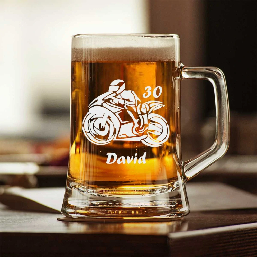 Půllitr s pískovaným motivem "MOTORKÁŘ"