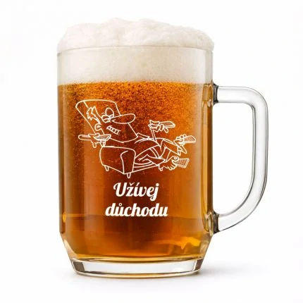 Půllitr s pískovaným motivem "UŽÍVEJ DŮCHODU"