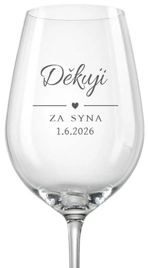 - Svatební sklenička na víno Děkuji za syna, 1 ks