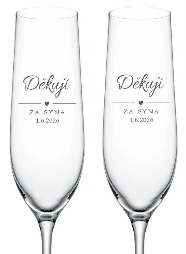 - Svatební skleničky na sekt Děkuji za syna, 2 ks