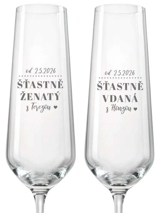 - Svatební skleničky na sekt Šťastně vdaná/ženatý, 2 ks