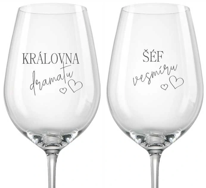 - Svatební skleničky na víno Královna a Šéf, 2 ks