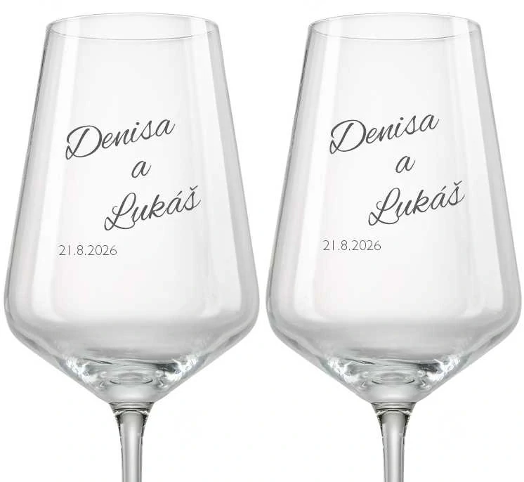 Svatební skleničky na víno se jmény a datem svatby, 2 ksodeslání 4 - 6 dnů649 Kč/ ks536 Kč bez DPH